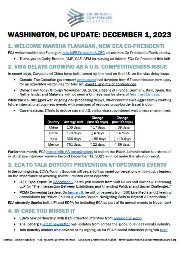 Tommy Goodwin is Vice President for the Exhibitions & Conferences Alliance (ECA), a newly-formed association dedicated to the recovery and advancement of the business events industry. In this role, he leads ECA’s advocacy and member engagement work on behalf the interconnected ecosystem of exhibitors, show and event organizers, suppliers, venues, and destinations that comprise the…