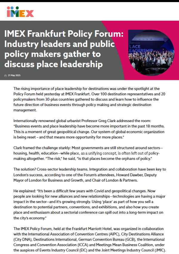 This inaugural, invite-only business and professional events Global Policy Forum is a collaborative initiative between ECA, UFI – the Global Association for the Exhibition Industry, and MAD Event Management. The focus will be on key public policy issues shaping events around the world, including: sustainability; talent; and international travel and commerce. From ECA…