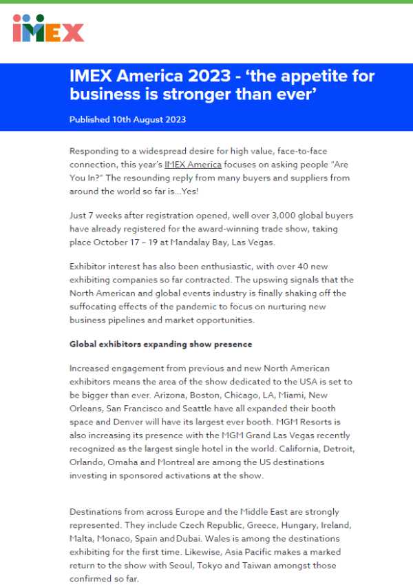 James Rees, President of JMIC: “These documents, vital to the development of an industry-wide standard pathway towards net zero carbon events.” The global industry leading Net Zero Carbon Events initiative has published seven best practice guidance and methodology documents that provide highly valuable actionable insights and strategies for the industry as organisations worldwide develop and…