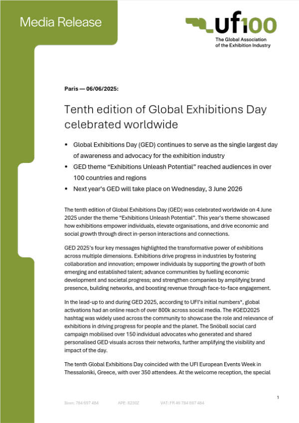 Hugh Jones, CEO of RX Global and President of UFI, the Association of the Global Exhibitions Industry shares the organisation’s key advocacy messages in a video address to policymakers.