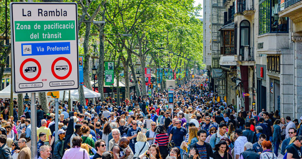 Crowds fill Barcelona’s famous La Rambla — a symbol of the city’s tourism boom that has also sparked local anti-tourism protests in recent years
