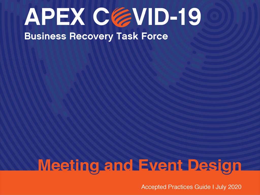 In July 2020 the Events Industry Council released the Meeting and Event Design Accepted Practices Guide. It is intended to serve as a resource and educational tool for industry professionals to utilise.