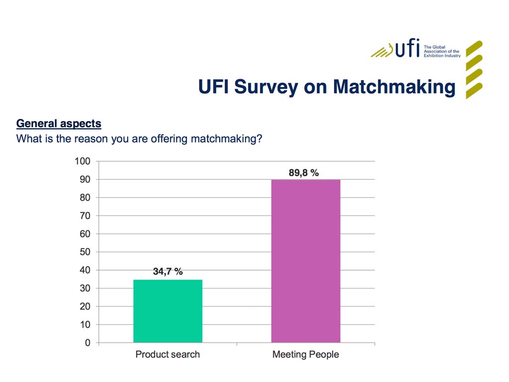 Matching the interests of visitors and exhibitors is a core task of each exhibition manager. Often the success of a show is measured by the extent to which the “right” persons could meet. The UFI Marketing Committee took this general principle into account and investigated the use of matchmaking tools and services within the exhibition industry. It then released a survey on matchmaking in June 2011, the results of which are summarized in the following presentation.
