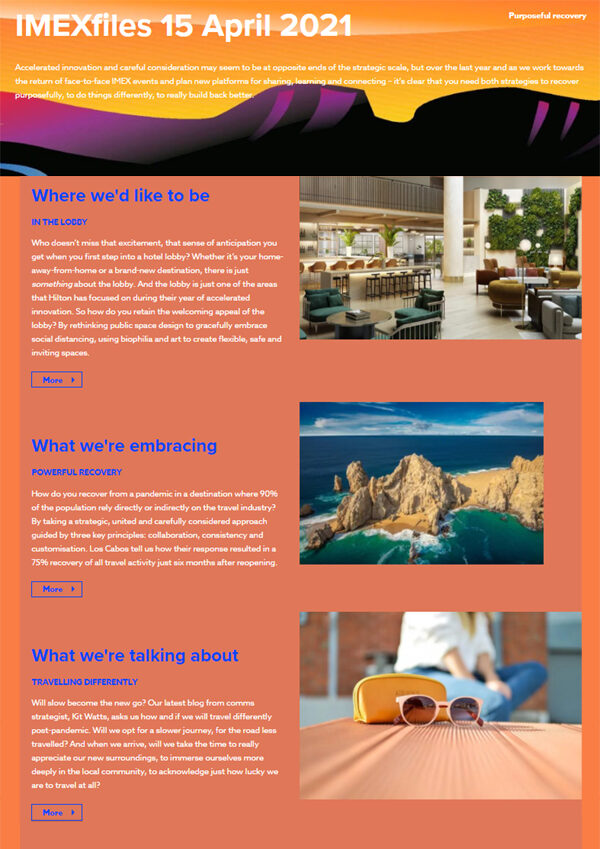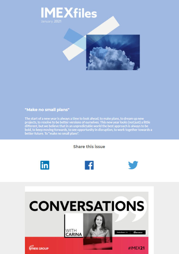 Is there such a thing as a next normal? That’s the question Nicola Kastner, VP, Global Head of Event Marketing Strategy for SAP will explore in an online Q&A hosted by the IMEX Group. IMEX CEO Carina Bauer will interview Nicola about her role in designing SAP’s event strategies and together they will dive into three…