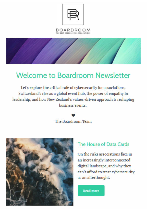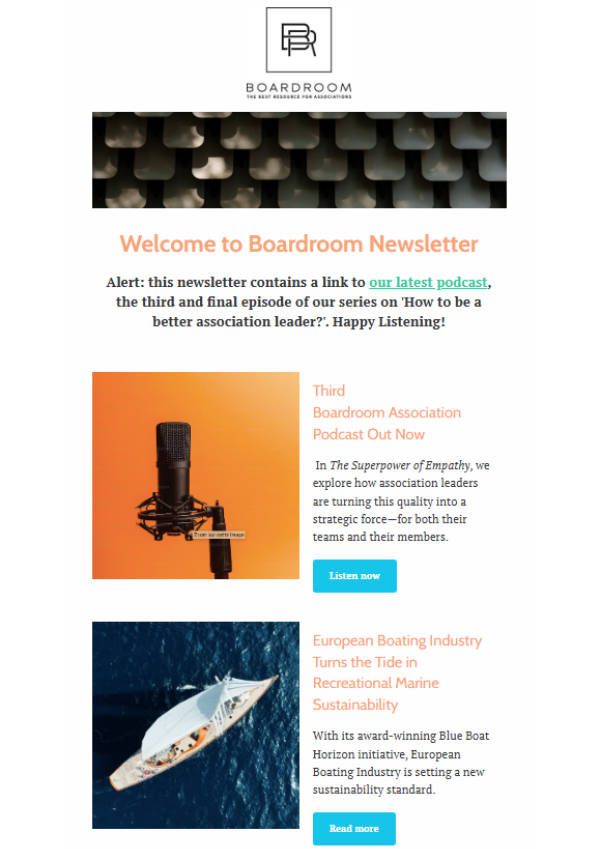 Stay informed with the latest association insights and trends by subscribing to regular updates from Boardroom, the global reference point both for the world of associations and within the meetings industry, with articles written by the sector’s most-experienced professionals and a magazine endorsed and supported by the members of its Association Advisory Board.