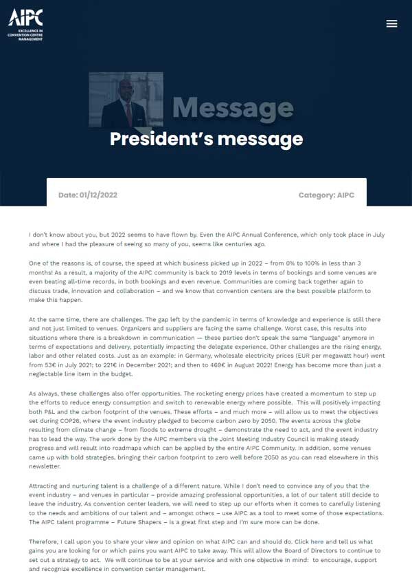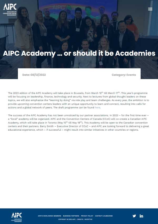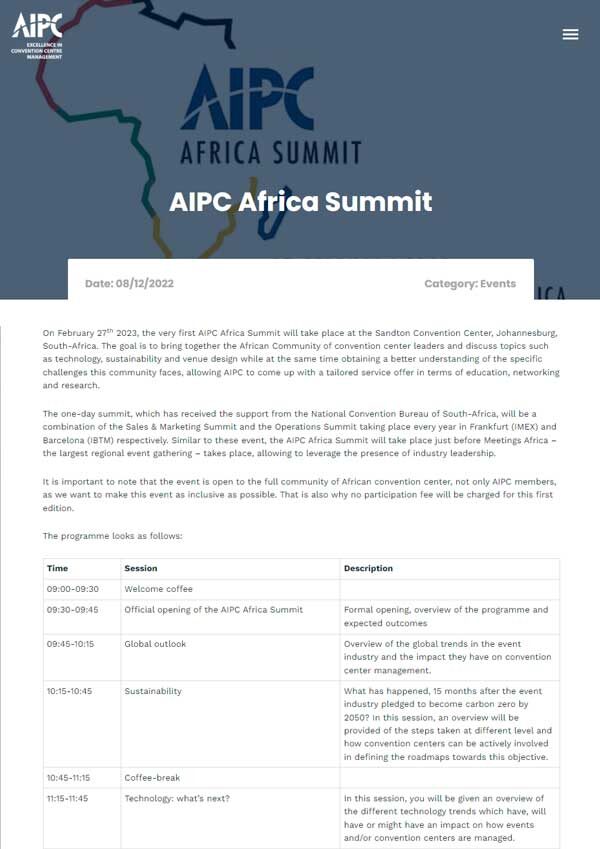 AIPC is proud to announce its first Africa Summit, which will take place on February 27th at the Sandton Convention Center in Johannesburg (South-Africa), just before the start of Meetings Africa. During this one-day summit, which will be a combination of lectures and facilitated networking, we will touch upon both the global outlook for convention…