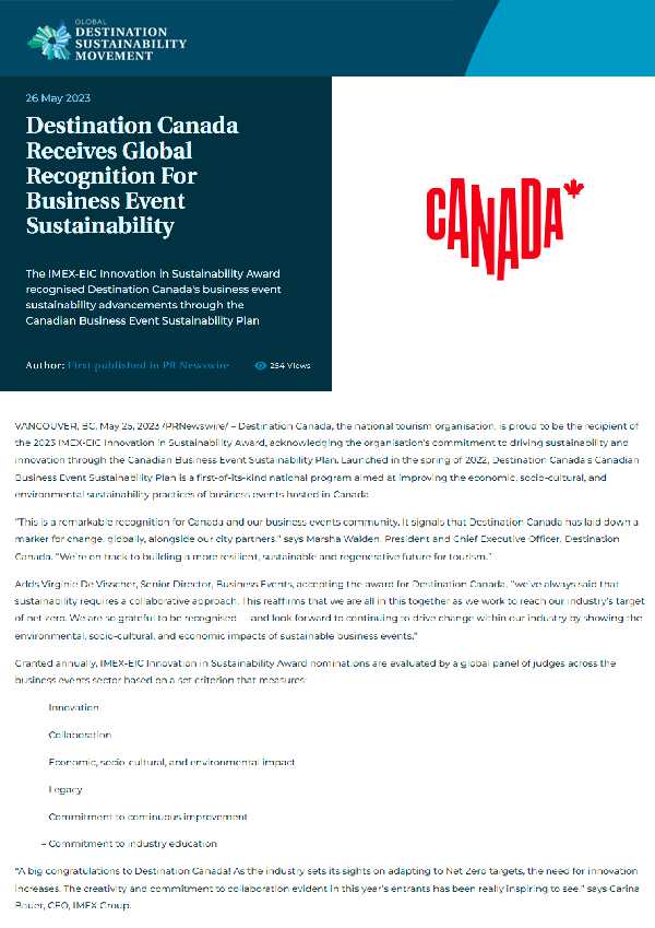 Destination Canada has completed its first Climate Action Plan — a major step in its sustainability journey and a signal of Canada’s leadership in regenerative tourism. Together with its long-term conference impact research, it highlights the importance of minimising negative environmental impacts while maximising the positive societal impacts generated by business and professional events.