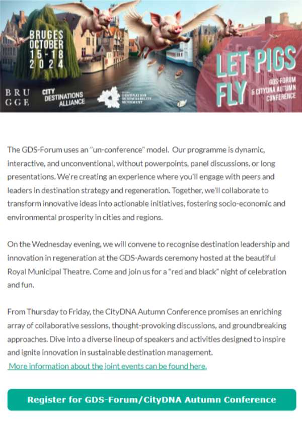 City Destinations Alliance (CityDNA) is a knowledge sharing alliance for cities and urban areas. With a holistic approach, our vision is for all cities in Europe to flourish. We are open and visionary, and want to inspire. We believe in sharing, and see our alliance as a community, a family, where we all work together….