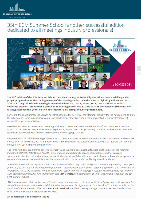 This event is open to ECM members only, specifically to tourism professionals working on city cards schemes (Product Managers, Project Leaders, Marketing Managers…) who are looking to improve – but also share – their knowledge with other participants. Our lunch-to-lunch event provides you with a unique opportunity: to meet and network with European colleagues managing city…