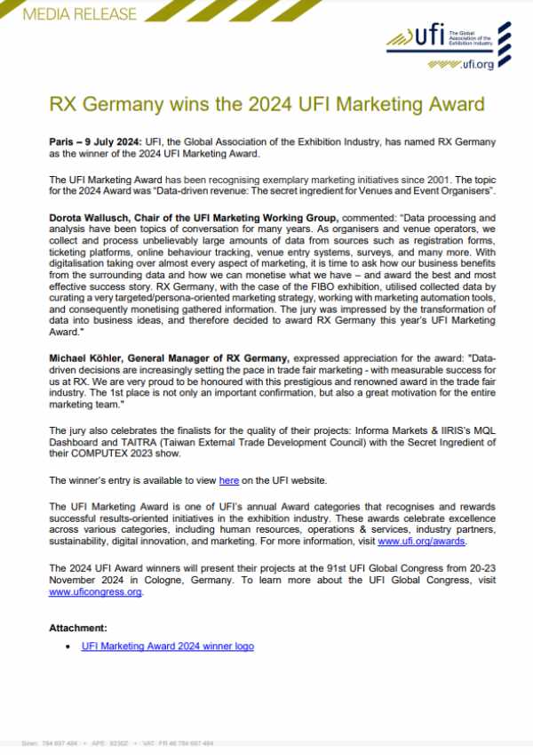 From UFI: 2024 will go into the history books as the best year the global exhibition industry has ever recorded, measured by revenues—topping out an astonishing comeback after the global pandemic. Investors remain eager to put money into our industry’s core business model of connecting people for trade and innovation, but the future will see…