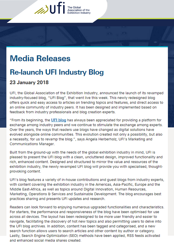Global Exhibitions Day is a chance to celebrate the exhibition industry and highlight its positive impact on jobs, business, innovation and local investment. Online, and through an array of national and local events, people on every continent are expected to join the GED18 campaign, from venues and organisers to students, local partners and public authorities.