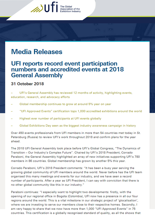 he UFI Forum is a one-day event on a specific topic or area of focus. The Forum 2019 themed “How to push Digital Innovation” is open to all industry professionals, both UFI members and non-members. UFI members benefit from a reduced participation fee. Join us on 15th May for more insight & networking! UFI thanks the members of…