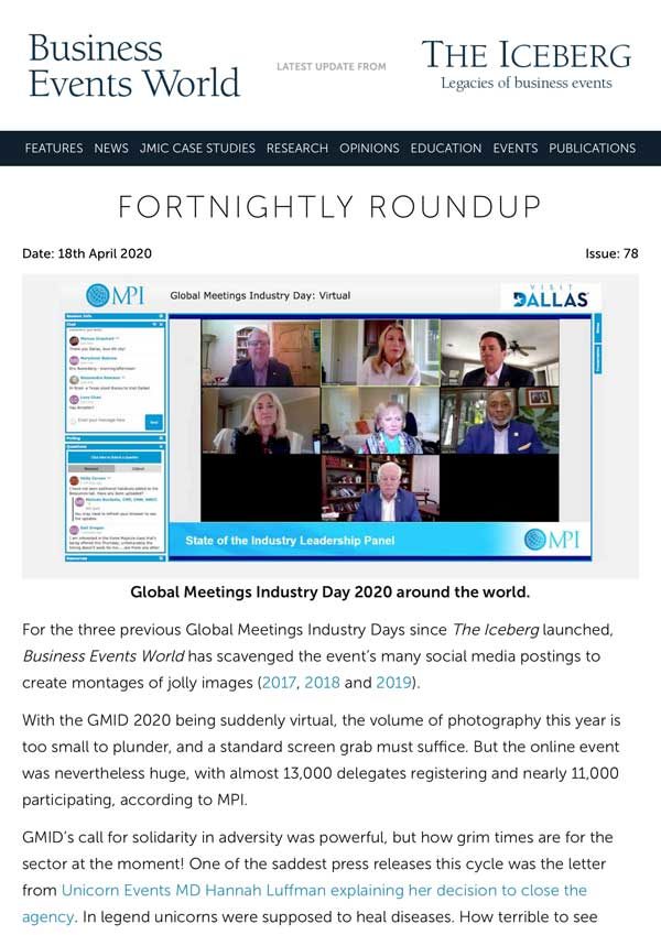 The Iceberg is sorely missing a wide range of cancelled industry events. We’re also sorely missing the cheery Martin Sirk selfie posted from all of them. Fortunately, the International Advisor of our partner the Global Association Hubs Partnership has recorded a podcast. From editor’s blog at Association Meetings International…