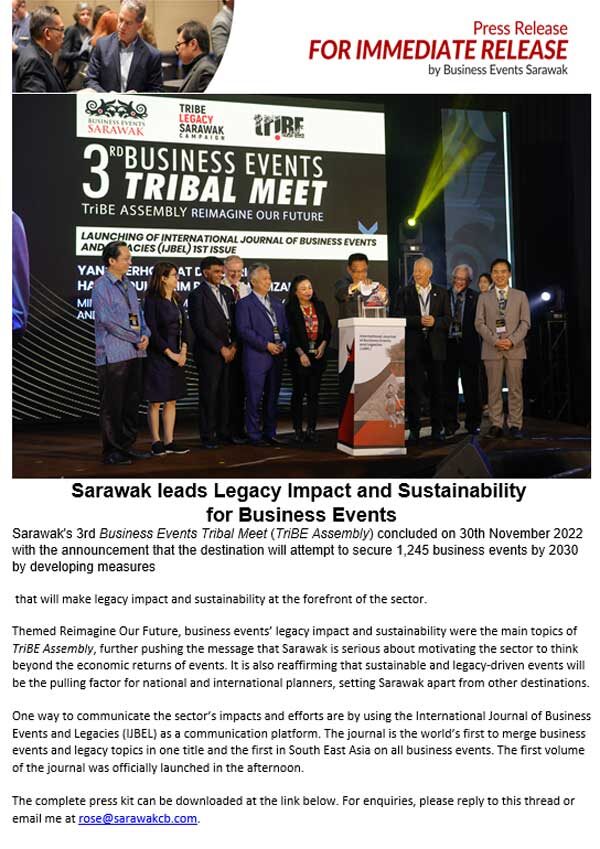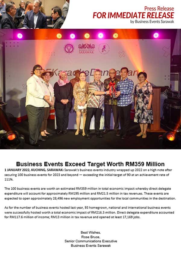 Sarawak’s business events industry wrapped up 2022 on a high note after securing 100 business events for 2023, exceeding the initial target of 90 at an achievement rate of 111 per cent. Business Events Sarawak said the 100 business events were worth an estimated RM359 million in total economic impact. From New Sarawak Tribune…