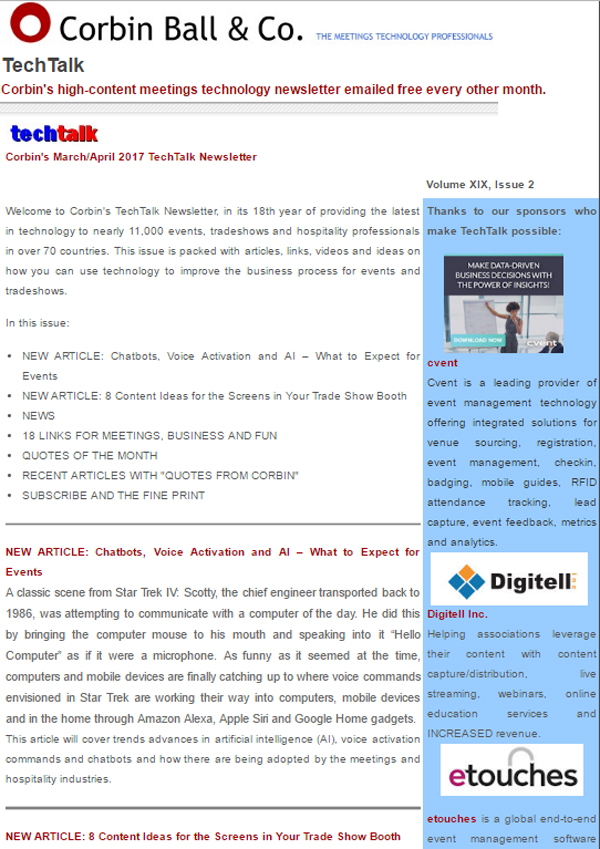 Corbin Ball’s Tech Talk Newsletter