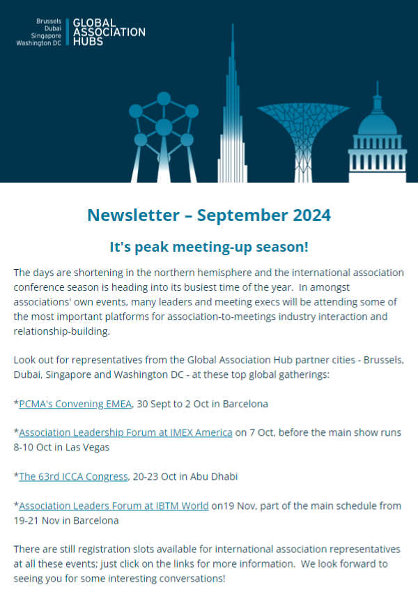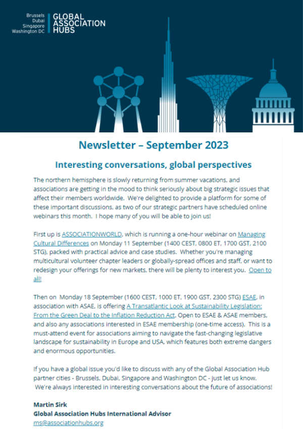 The world’s leading regional hubs for international association activity – Brussels, Dubai, Singapore & Washington DC – are teaming up with one of world’s largest communities of association professionals and volunteer leaders to create a series of thought-provoking and perspective-changing online events, designed to help associations navigate the ever-more challenging, hyper-competitive and fast accelerating business…