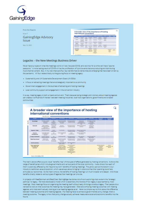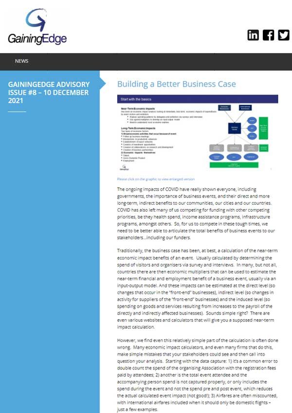 Gary Grimmer argues that developing a value proposition around event impacts is the most strategic issue facing both destination promoters and events organisers. If we measure and report impacts effectively using multi-dimensional KPIs that communicate the industry’s full economic, social and environmental value, we’re going to be part of a more successful and sustainable industry.