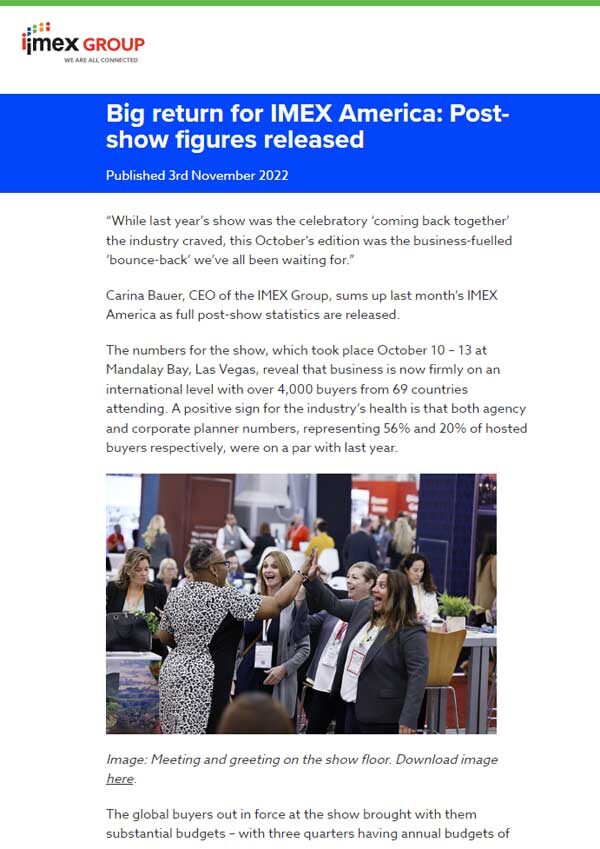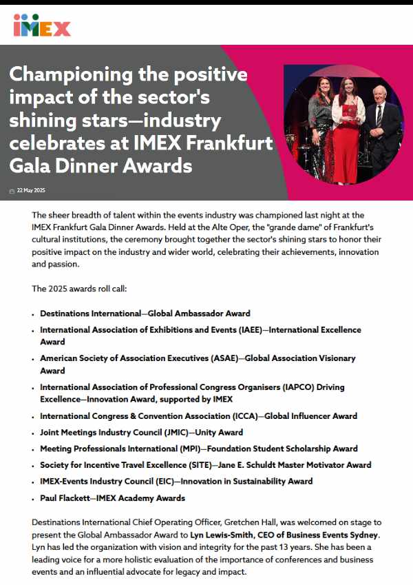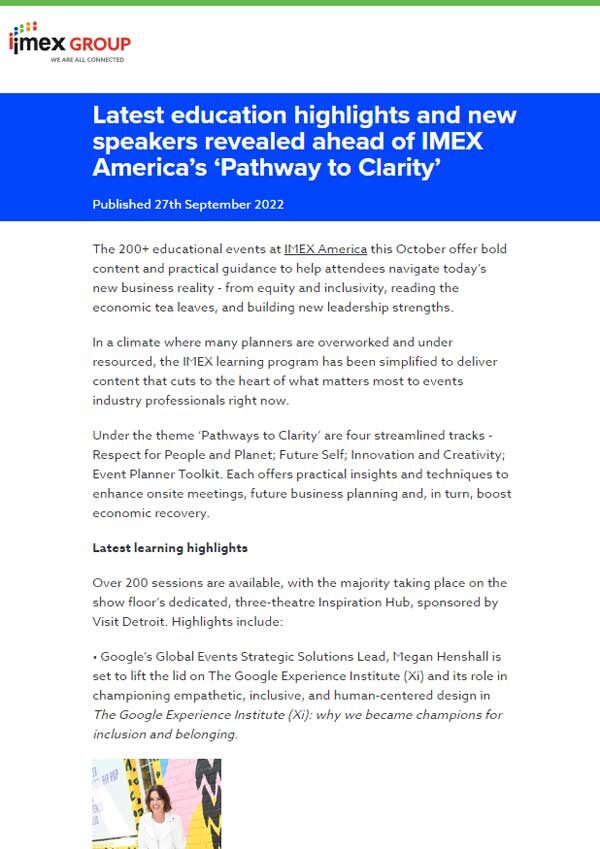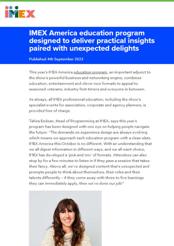 At IMEX, the free professional education program includes 150+ in-depth seminars, hands-on workshops and specialist forums at each show, covering a wide range of industry insights, trends, and best practices. Spark your imagination at groundbreaking keynotes, soak up fresh ideas from experts and innovators, keep up with the latest event tech, polish your professional skills.