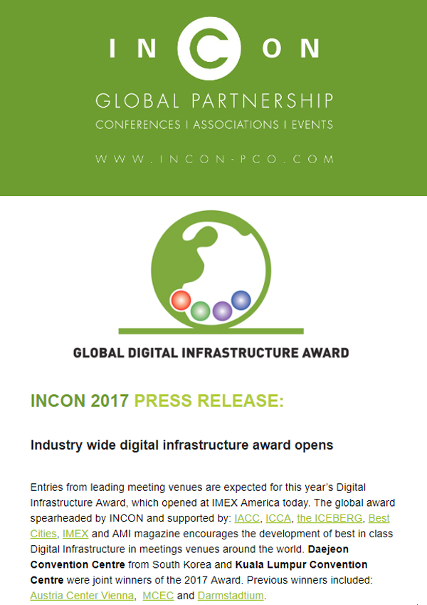 Deadline for entries: 28 February 2017. The Digital Infrastructure Award has been developed by INCON to celebrate and inspire change in the digital infrastructure and services made available in meeting venues around the world. The Award rests on a simple principle that meetings are better when a first class digital infrastructure is made available along with…