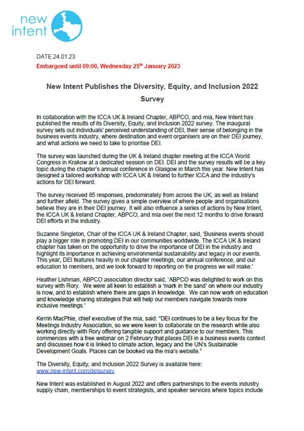 Rory G. Archibald confirms the mission of New Intent – a movement designed to galvanise diversity, equity, and inclusion across the business events sector. In an exclusive video, Archibald explains that the ambition is to go far beyond housekeeping, beyond box-ticking, or DEI-washing. “We have a duty to do this or we are doing humanity…